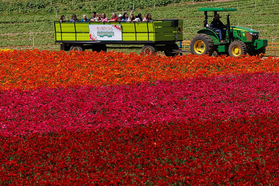 Οι ποικιλία των χρωμάτων τους δεν έχει αντίπαλο. Βαθιά χρώματα από το λευκό μέχρι το μπλε και το σκούρο μπορντό, με κάθε φυτό να βγάζει τεράστια ποσότητα ανθών. Για όλους αυτούς τους λόγους αλλά και για τη χαρά της άνοιξης, οι τουρίστες επισκέπτονται τις καλλιέργειες Flower Fields στην Καλιφόρνια.