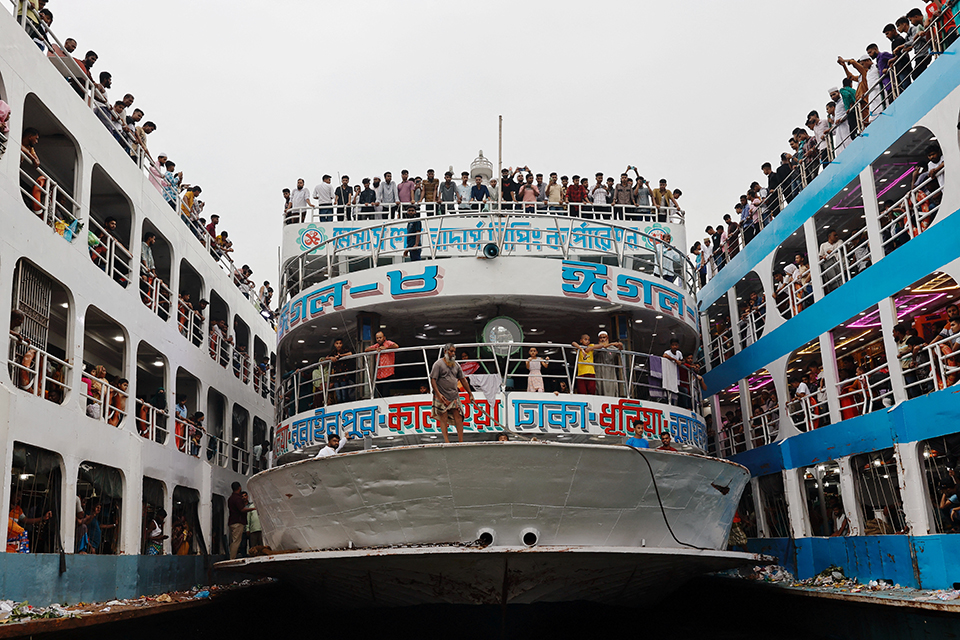 Καταφορτωμένα τα καράβια στο λιμάνι Sadarghat. Οι Μπαγκλαντεσιανοί εγκαταλείπουν την πρωτεύουσα Dhaka για να κατευθυνθούν στα χωριά τους με σκοπό να γιορτάσουν μαζί με τις οικογένειές τους την μουσουλμαντική γιορτή Ιντ αλ αντχα.