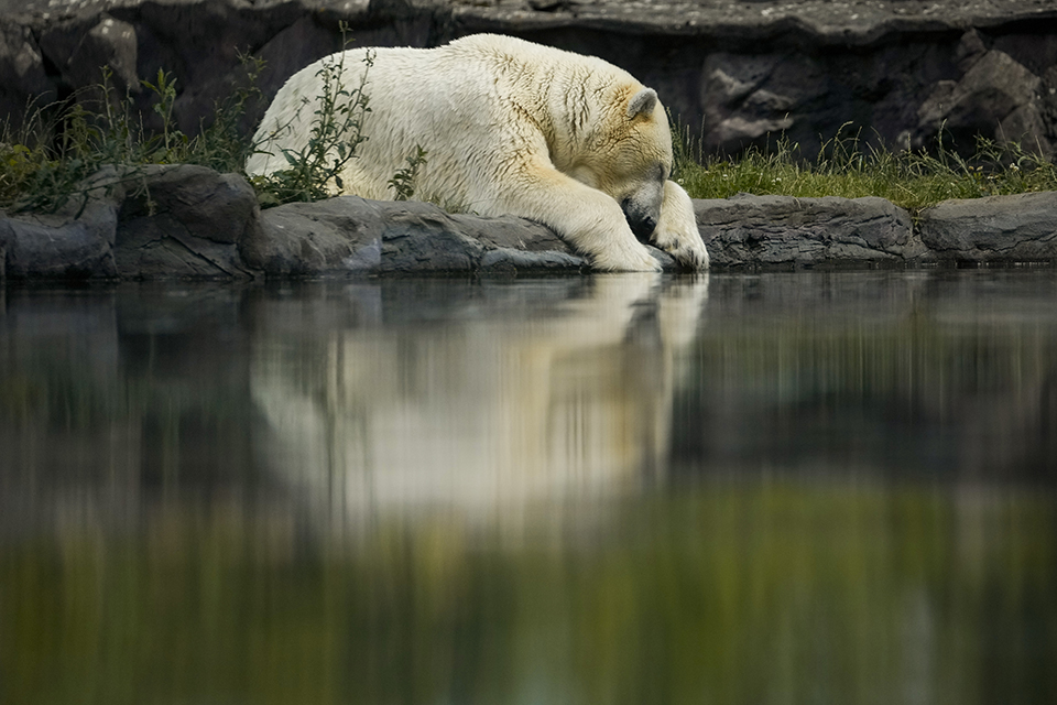 Στον ζωολογικό κήπο ZOOM Adventure στο Gerlenkisrchen της Γερμανίας έχει λίγη δροσιά λόγω της βλάστησης. Οχι όμως τόση, ώστε οι πολική αρκούδα της φωτογραφίας να νιώθει άνετα έτσι ώστε ζαλισμένη αποκοιμήθηκε κοντά στην λιμνούλα του κλουβιού της.