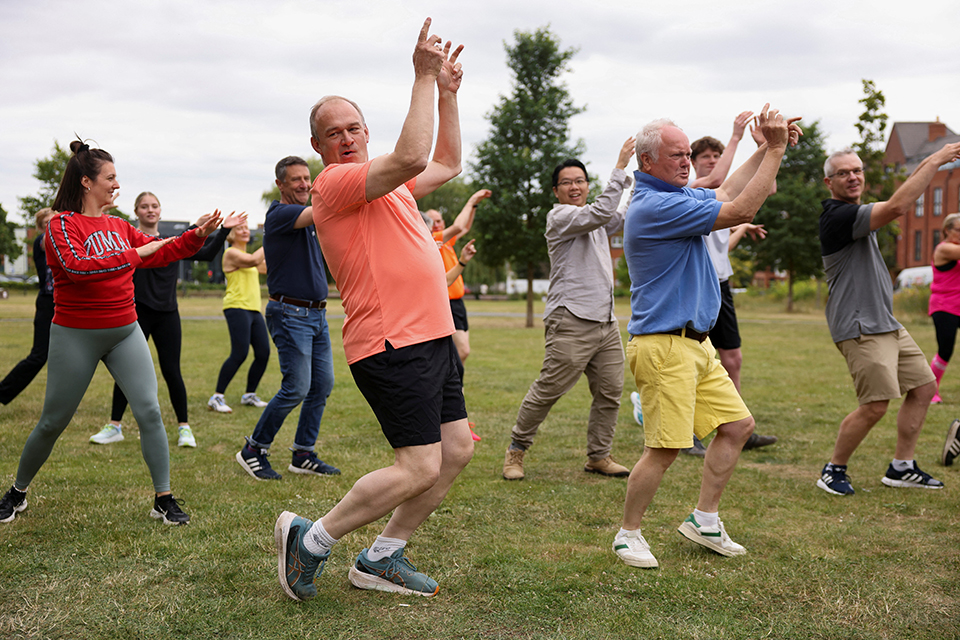 Ο αρχηγός των Φιλελεύθερων Δημοκρατών Εντ Ντέιβι – μπροστά στην εικόνα με μαύρο σορτσάκι στην διάρκεια υπαίθριας άσκησης Zumba) χαρίζει τα πιο ενδιαφέροντα ενσταντανέ της πολιτικής σκηνής μέχρι τώρα, κάτι που σίγουρα θα γίνει πιο ενδιαφέρον όσο πλησιάζουν οι εκλογές. Εχει πέσει από σανίδα γουίντσερφ, έχει κρεμαστεί ανάποδα από σκοινί και κάνει ότι μπορεί να ενισχύσει το κόμμα του σε αυτή την εκλογική αναμέτρηση και να επιστρέψει στις παλιές του δόξες.