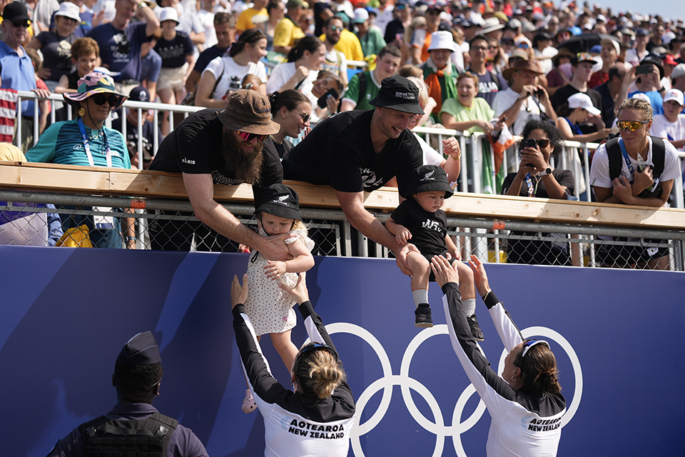 Εχοντας μόλις κερδίσει το χρυσό μετάλλιο οι Νέο Ζηλανδές Brooke Francisκαι Lucy Spoorsστην κωπηλασία παραλαμβάνουν και τα μωρά τους την Keira και τον Rupert σε ένα από τα πιο ευχάριστα στιγμιότυπα της Ολυμπιάδας στο Παρίσι.