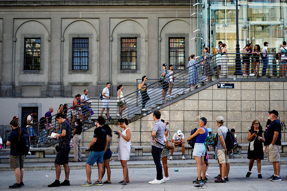 Τον τέταρτο επίσημο καύσωνά της διανύει η Ισπανία. Ο δήμος της Μαδρίτης, σε μια προσπάθεια οι Μανδριλένοι να βρουν δροσερό καταφύγιο, τους πρότεινε τα μουσεία και τις αίθουσες τέχνης της πόλης. Εκείνοι μάλλον άκουσαν και μπλέχτηκαν με τους τουρίστες δημιουργώντας μια τεράστια ουρά για το Reina Sofia της πρωτεύουσσας.
