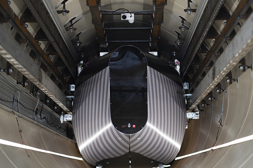 Η λήψη είναι εντυπωσιακή και το έργο ακόμη πιο πολύ. Το εικονιζόμενο δοκιμαστικό όχημα ανυψώνεται από μαγνητικά πεδία και κινείται μέσα σε έναν αποσυμπιεσμένο σωλήνα στην διάρκεια δοκιμών μεταφοράςπου έγιναν στο Veendam της βόρειας Ολλανδίας.