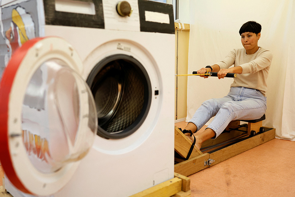 Ενα ζευγάρι στην Γαλλία προσπαθεί να ζήσει σωστά ή για να είμαστε ακριβείς, περιβαλλοντικά σωστά. Ετσι δημιουργήσαν έναν μικρό χώρο κοντά στο Παρίσι με σκοπό να υιοθετήσουν έναν τρόπο ζωής που θα περιορίζει τα απόβλητα και την κατανάλωση νερού έτσι ώστε να πετύχουν τους στόχους που έχουν θέσει τα Ηνωμένα Εθνη μέχρι το 2050. Στην φωτογραφία η σχεδιάστρια εσωτερικών χώρων Caroline Pultzδείχνει πως γυρνά τον κάδο του πλυντηρίου για να κάνει μια πλύση ρούχων.