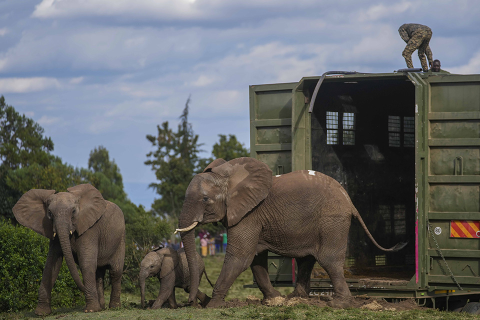 Με φορτηγό με τεράστια κλουβιά έγινε η μεταφορά τους. Η οικογένεια των πέντε ελεφάντων «μετακόμισε» και από εδώ και πέρα θα ζουν στο Εθνικό Πάρκο Aberdare στην Κένυα, μακριά από συρράξεις σε ένα απόλυτα προστατευμένο περιβάλλον.