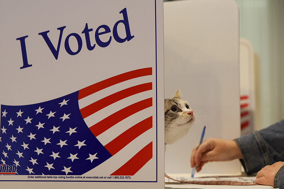 Με τα παιδιά τους, τα σκυλιά τους και στην συγκεκριμένη περίπτωση με τα γατιά τους, οι Αμερικανοί ψήφισαν για τις προεδρικές εκλογές. Η εικονιζόμενη ονομάζεται Skye και φωτογραφήθηκε στην Πενσυλβάνια.