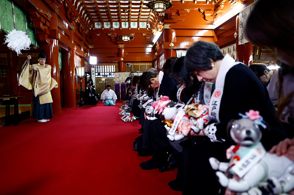 Με τα ρομποτάκια τους αγκαλιά κατέφτασαν οι ιδιοκτήτες τους στο ναό Kanda Myojin του Τόκυο. Η γιορτή Shichi-go-San, που παραδοσιακά ήταν για τα μικρά παιδιά και την καλή τους υγεία άρχισε με τα χρόνια να περιλαμβάνει και αυτούς που έχουν «διαφορετικά παιδιά». Τέτοια για κάποιους Ιάπωνες είναι τα ρομποτάκια Aido που προσφέρουν μια παρηγοριά στην μοναξιά και μια παρέα που τους περιμένει όταν γυρίζουν σπίτι.