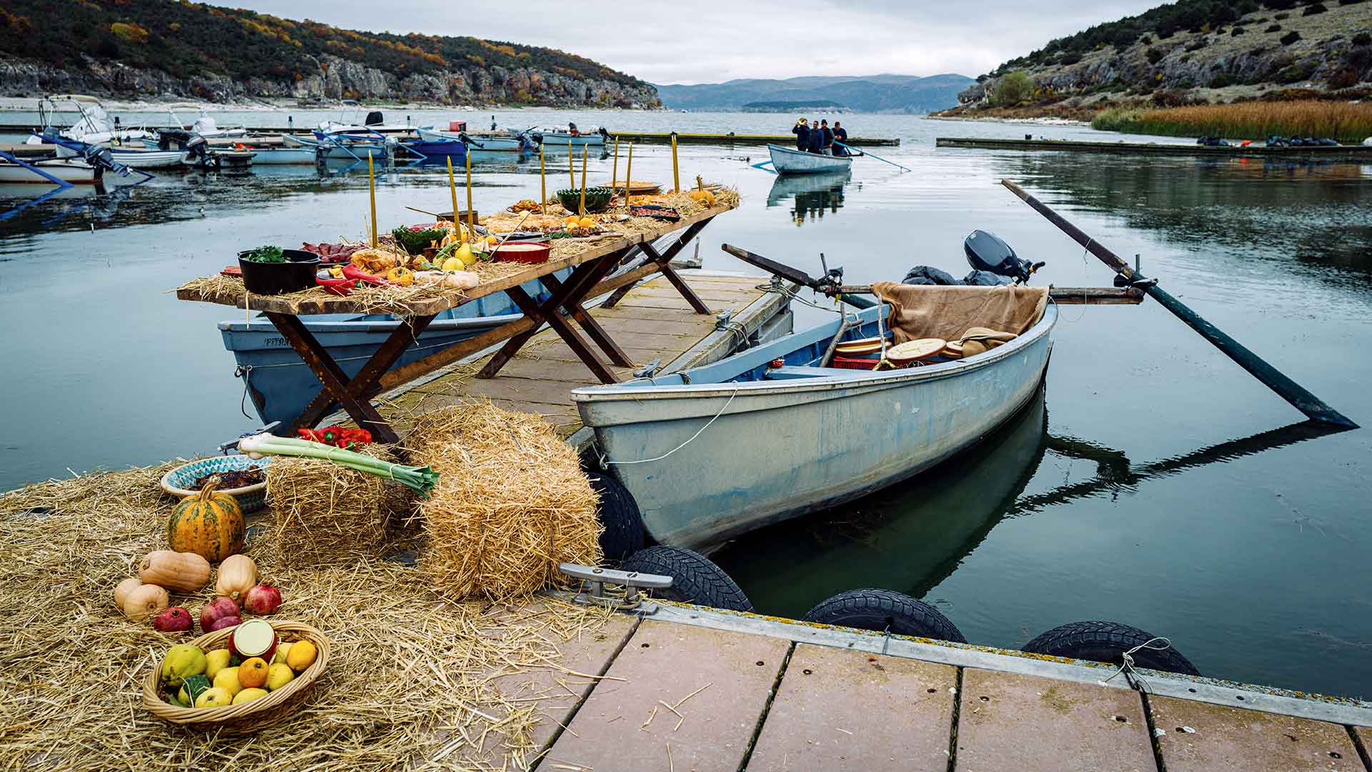 Στο αγγελοπουλικό τοπίο των Πρεσπών, σε μια εξέδρα μπρος στο λιμανάκι των Ψαράδων, στρώσαμε ένα παραμεθόριο γιορτινό τραπέζι, με τους ερημίτες του χωριού και δεκάδες άλλους μάγειρες και μαγείρισσες, επαγγελματίες και ερασιτέχνες, που ετοίμασαν φαγητά εμπνευσμένα από την παράδοση της δυτικής Μακεδονίας.