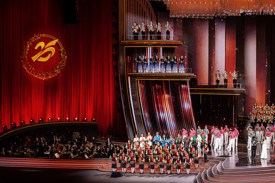 Το αποκαλούν παράδεισο των καζίνο της Ανατολής. Είναι μόλις μια ώρα με φέρι από το Χονγκ Κόνγκ και όσοι θέλουν να επιδοθούν στα τυχερά παιχνίδια καταφεύγουν εκεί για να δοκιμάσουν την τύχη τους μιας και απαγορεύονται στην Κίνα. Φέτος, γιορτάζει τα 25 χρόνια επανένωσης με αυτή, καθώς στις 20 Δεκεμβρίου του 1999 καιμετά από 442 χρόνια κατοχής από την Πορτογαλία επέστρεψε με ειδικό καθεστώς στην Κίνα. Στην σκηνή, καλλιτέχνες με σημαίες του Μακάο και της Κίνας συμμετέχουν στην γιορτή με τίτλο «Το Μακάο τραγουδά με χαρά για το μέλλον».