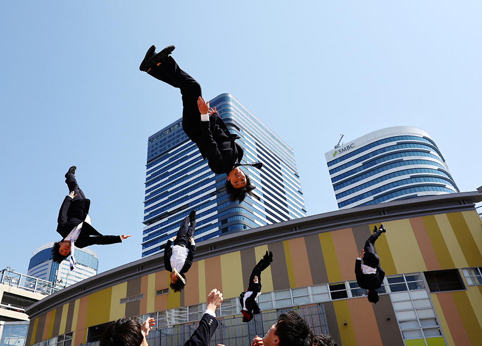 Καθημερινά φορούν τα κοστούμια και τις γραβάτες τους στο Τόκιο και βγάζουν το «μεροκάματο» τους σε διάφορες επιχειρήσεις. Ομως αμέσως μετά την δουλειά τρέχουν για το προσωπικό τους πάθος. Οι Cheer Re- Man’s, επιδεικνύουν τις ακροβατικές τους φιγούρες στην εκδήλωση Cheer Up Japan που έγινε στο Τόκιο.