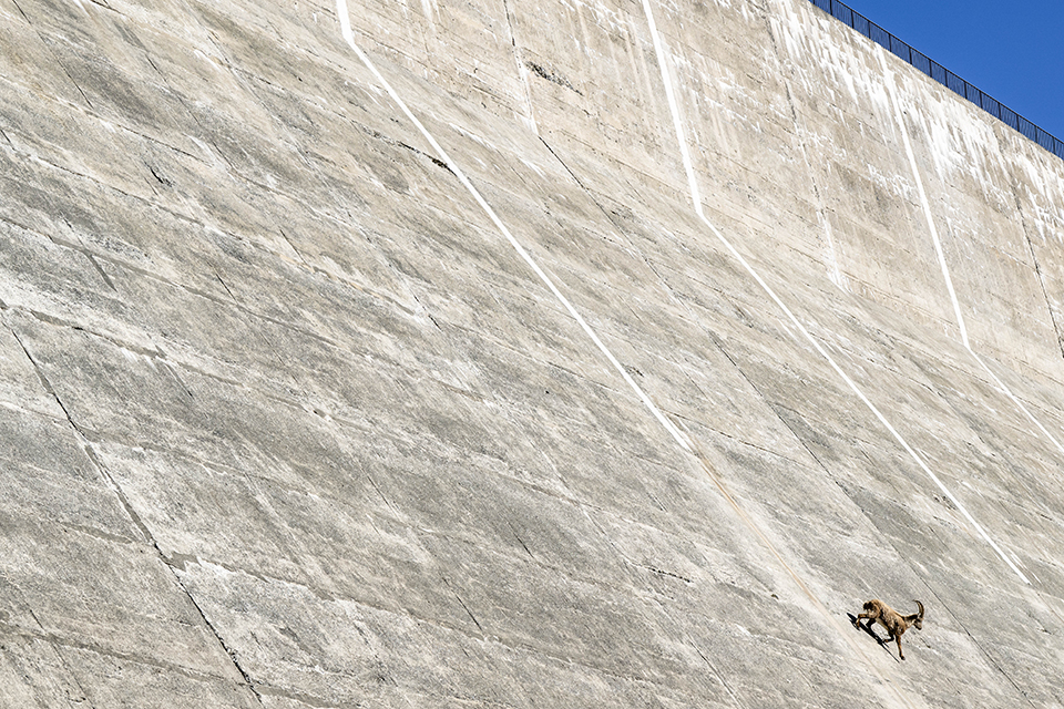 Για να γλύψουν αλάτι που συγκεντρώνεται στο τσιμέντο του φράγματος Salanfe, ανεβαίνουν τα αγριοκάτσικα. Το ύψους 52 μέτρων φράγμα βρίσκεται στο Salvan, sτο καντόνι του Valai.
