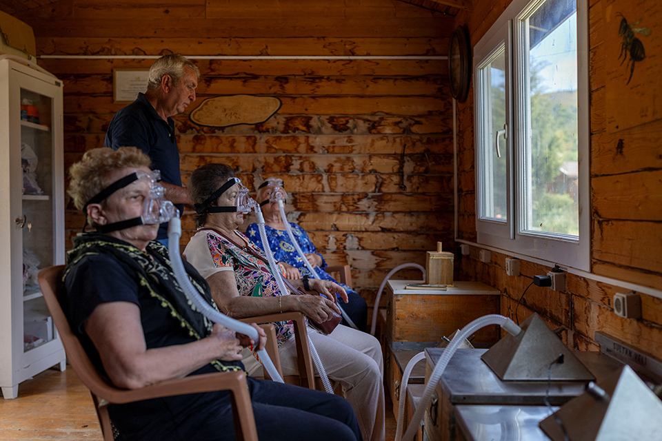 Οι εικονιζόμενες κυρίες απαθανατίζονται από τον φακό στην διάρκεια της θεραπείας τους. Για δύο με τρεις ώρες την ημέρα φορούν την μάσκα τους και εισπνέουν αέρα κατευθείαν από τις κυψέλες του εικονιζόμενου Huseyin Ceylan. Ο κύριος Ceylan είναι μελισσοπαραγωγός και πιστεύει ότι ο αέρας από τις κυψέλες μπορεί να είναι θεραπευτικός με αρκετό κόσμο να συμφωνεί μαζί του και να πηγαίνει στο κτήμα του, στα προάστεια της Σμύρνης για την παράδοξη θεραπεία, πληρώνοντας αδρά, και για τις εισπνοές και για την διαμονή.