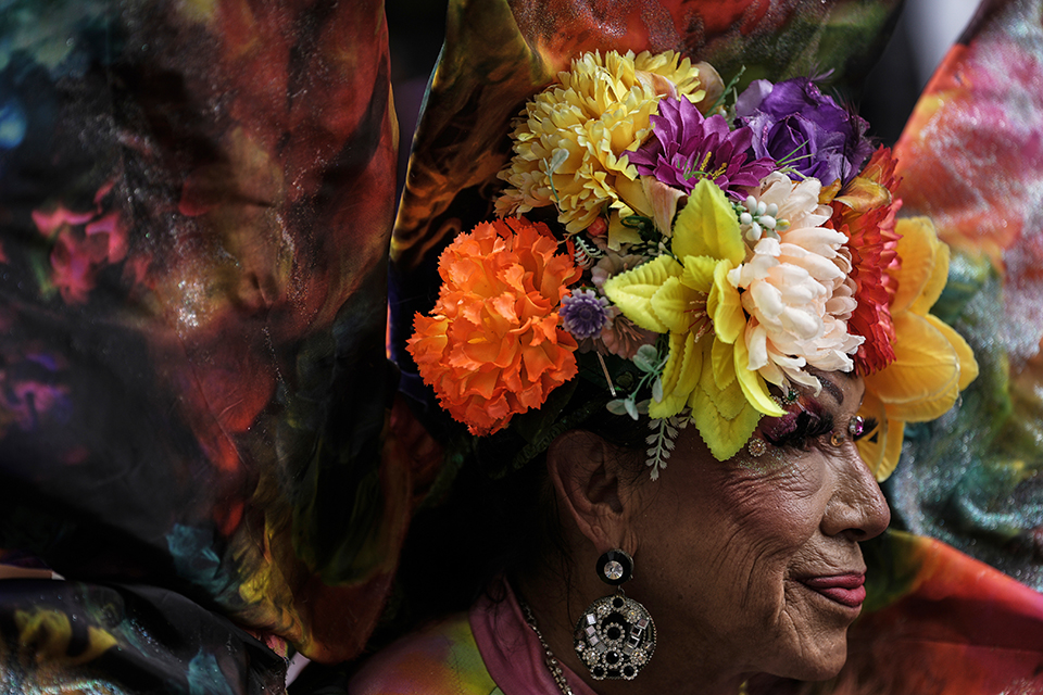Κάθε Pride έχει την υπερβολή του. Δυνατή μουσική, στρας, λίκρα, έντονα χρώματα, ό,τι αρμόζει σε μια γιορτή. Στην Κολομβία από την άλλη δεν θα μπορούσε να λείπει και μια δόση παράδοσης με την κυρία που συμμετέχει στην πορεία της Μποκοτά να είναι στολισμένη με άνθη.