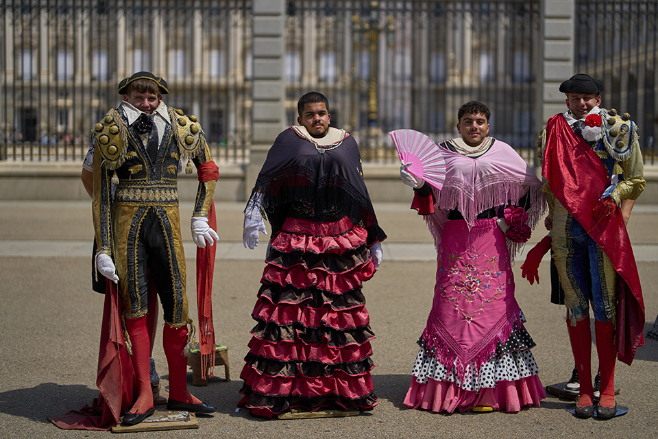 Στημένα έξω από το Βασιλικό Παλάτι της Μαδρίτης είναι οι κούκλες των ταυρομάχων και των χορευτριών φλαμέγκο. Και η παρέα των αγοριών έδωσε το αντίτιμο που ζητούσε ο ιδιοκτήτης τους για μια αναμνηστική και αστεία φωτογραφία από την επίσκεψή τους στην Ισπανία.