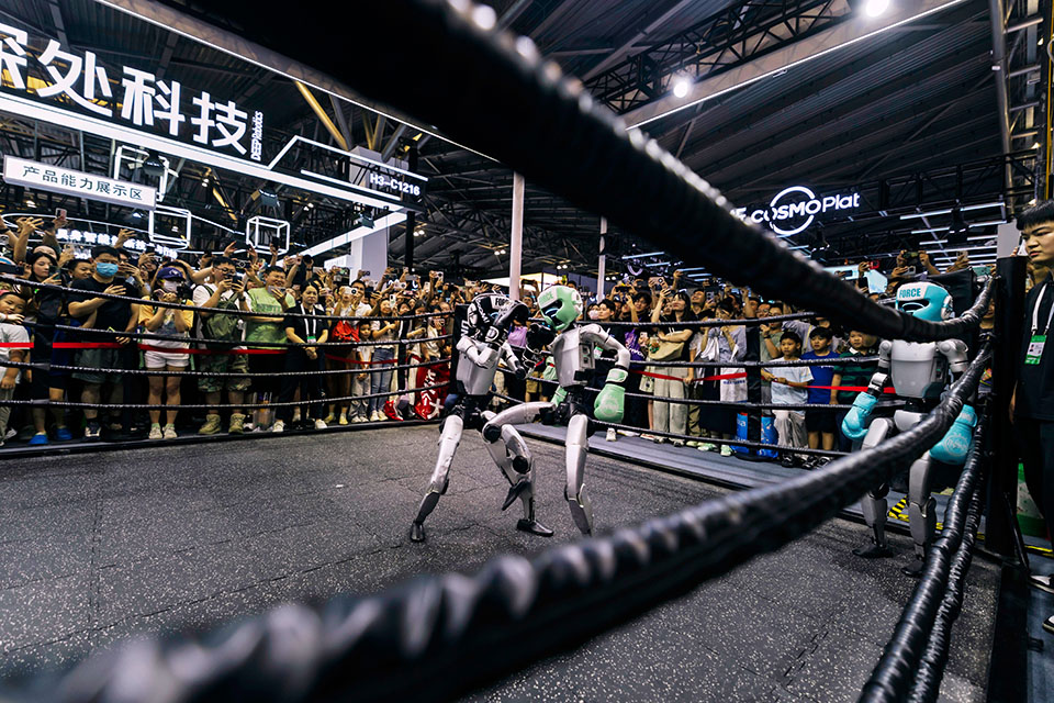 Η World Artificial Intelligence Conference (WAIC) διεξάγεται μέχρι το τέλος του μήνα στην Σανγκάη της Κίνας παρουσιάζοντας ότι πιο σύγχρονο στις καταιγιστικές εξελίξεις της τεχνολογίας. Στην φωτογραφία για την διασκέδαση των επισκεπτών στήθηκε και ένας αγώνας μποξ μεταξύ ρομπότ με ενθουσιώδη ανταπόκριση.