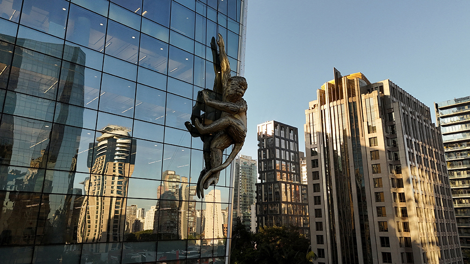 Στο οικονομικό και επιχειρηματικό κέντρο του Σάο Πάολο τοποθέτησε το γλυπτό της η Αυστραλή καλλιτέχνις Lisa Roet. Θέλησε να χρησιμοποιήσει τους αντικατοπτρισμούς των κτιρίωνγια να τοποθετήσει την φουσκωτή μαϊμού, για να δημιουργήσει την σύνδεση μεταξύ της φύσης και των ζώων της με τον σύγχρονο κόσμο, σαν μια έκκληση για την σωτηρία του περιβάλλοντος.