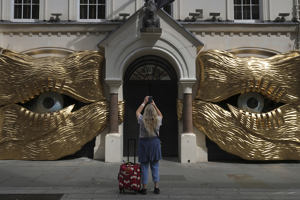 Με δύο τεράστια μάτια έχει στολιστεί η είσοδος του οίκου δημοπρασιών Sotheby’s στο Λονδίνο για μια σπουδαία δημοπρασία του μήνα. Η τεράστια συλλογή τηςPauline Karpidas με έργα τέχνης των Μαγκρίτ, Πικάσο, Πικάμπια, ντε Κίρικο, Νταλί, Ερνστ, Γουόρχολ, διακοσμητικά αντικείμενα του Τζιακομέντι και άλλων σπουδαίων καλλιτεχνώνθα αλλάξει σύντομα χέρια.