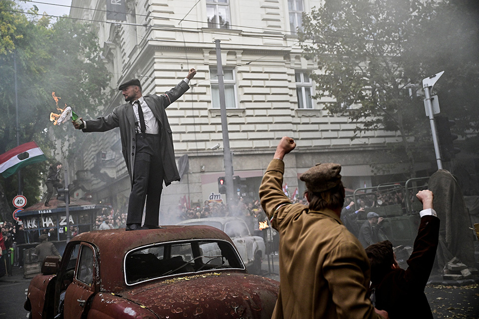 Με την χρήση ηθοποιών και την συμμετοχή χιλιάδων κόσμου, έγινε ο εορτασμός για την 69η επέτειο της Ουγγρικής επανάστασης. Ντυμένοι με ρούχα εποχής και παλιά αυτοκίνητα έκαναν την αναπαράσταση των πρώτων εξεγερμένων φοιτητών που διήρκησε μέχρι τις 10 Νοεμβρίου 1956 με την εισβολή των Σοβιετικών δυνάμεων.
