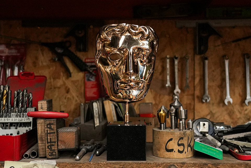 Πάνω στον πάγκο εργασίας και ανάμεσα σε εργαλεία βρίσκεται ένα από τα πολύτιμα βραβεία BAFTA που θα δοθούν στις καλύτερες ταινίες και ηθοποιούς στην Βρετανία, ένας τελευταίος προάγγελος για τα Οσκαρ.