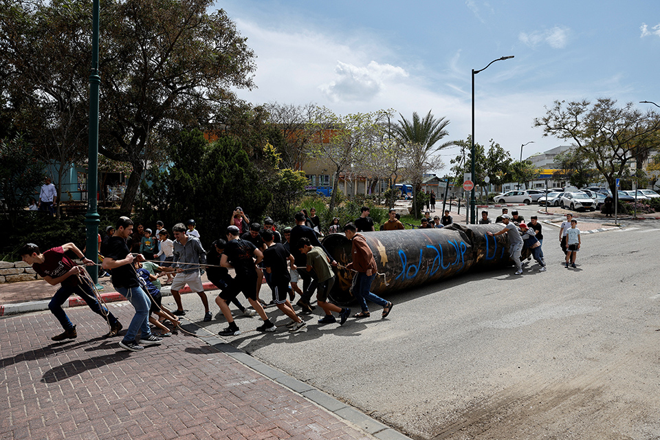 Ο εικονιζόμενος πύραυλος προσγειώθηκε στην αυλή ενός πολύχρωμου παιδικού σταθμού στον καταυλισμό Peduel. Ηταν ένα από τα χτυπήματα στο Ισραήλ με τους περισσότερους τραυματισμούς και καταστροφές. Αμέσως στήθηκε ένα δίκτυο για τους ανθρώπους που τα σπίτια του καταστράφηκαν πάντα με την βοήθεια των παιδιών του οικισμού που από πολύ νωρίς έχουν μάθει τι πρέπει να κάνουν. Σε αυτό το πλαίσιο μαζεύτηκε η πιτσιρικαρία όλη μαζί και απομάκρυνε ότι απέμεινε από τον πύραυλο από τον παιδικό σταθμό.