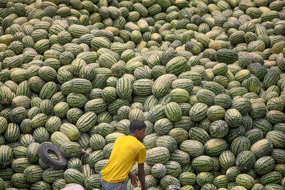 Γέμισε το καράβι με καρπούζια έτοιμα για να ξεφορτωθούν από το ποτάμι Buriganga στην Ντάκα. Σύμφωνα με το υπουργείο Γεωργίας της χώρας η φετινή χρονιά είναι εξαιρετική για τα καρπούζια μιας και φέτος οι αγρότες καλλιέργησαν 34.480 εκτάρια σε σύγκριση με 27.350 πέρυσι και έχοντας καταπληκτική παραγωγή. Για την ιστορία η χώρα παράγει πάνω 2.5 εκατομμύρια τόνους ετησίως.