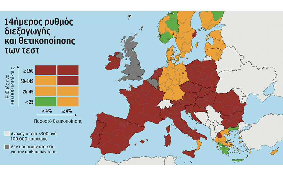 Ιδιαίτερη ανησυχία προκαλεί η εξέλιξη της πανδημίας σε 23 κράτη της Ε.Ε., αναγνωρίζει χθεσινή έκθεση του Ευρωπαϊκού Κέντρου Ελέγχου και Πρόληψης Νοσημάτων (ECDC). Την ίδια στιγμή, μία ακτίνα αισιοδοξίας διεφάνη από τις χθεσινές δηλώσεις του Γερμανού υπουργού Υγείας, Γενς Σπαν, οποίος εκτιμά ότι το εμβόλιο πιθανώς να είναι διαθέσιμο για τους Γερμανούς πολίτες στις αρχές της επόμενης χρονιάς. Ωστόσο, η ολοκλήρωση μαζικού εμβολιασμού απαιτεί έξι έως επτά μήνες. Την ίδια στιγμή, σε αγώνα δρόμου για την επιβολή νέων μέτρων ή ενίσχυσή τους βρίσκονται οι ευρωπαϊκές κυβερνήσεις προκειμένου να ανακόψουν την ιλιγγιώδη ταχύτητα εξάπλωσης της πανδημίας πριν από τον βαρύ χειμώνα.