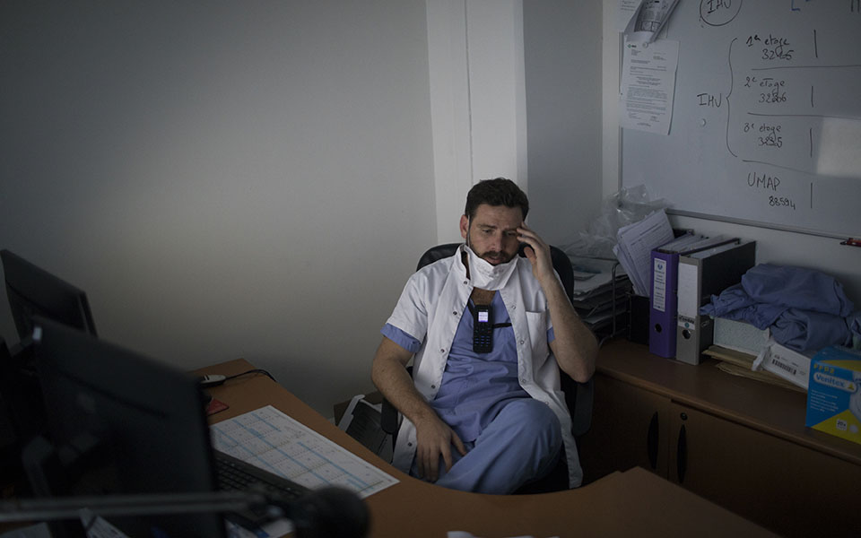 Στις δύο το μεσημέρι, η πτέρυγα εντατικής θεραπείας του νοσοκομείου La Timone στη Μασσαλία καθώς και ο γιατρός Ζουλιάν Καρβελί, τηλεφωνούν σε οικογένειες που έχουν πληγεί από το δεύτερο κύμα του νέου κορωνοϊού και τους ενημερώνουν για την κατάσταση υγείας των δικών τους ανθρώπων.