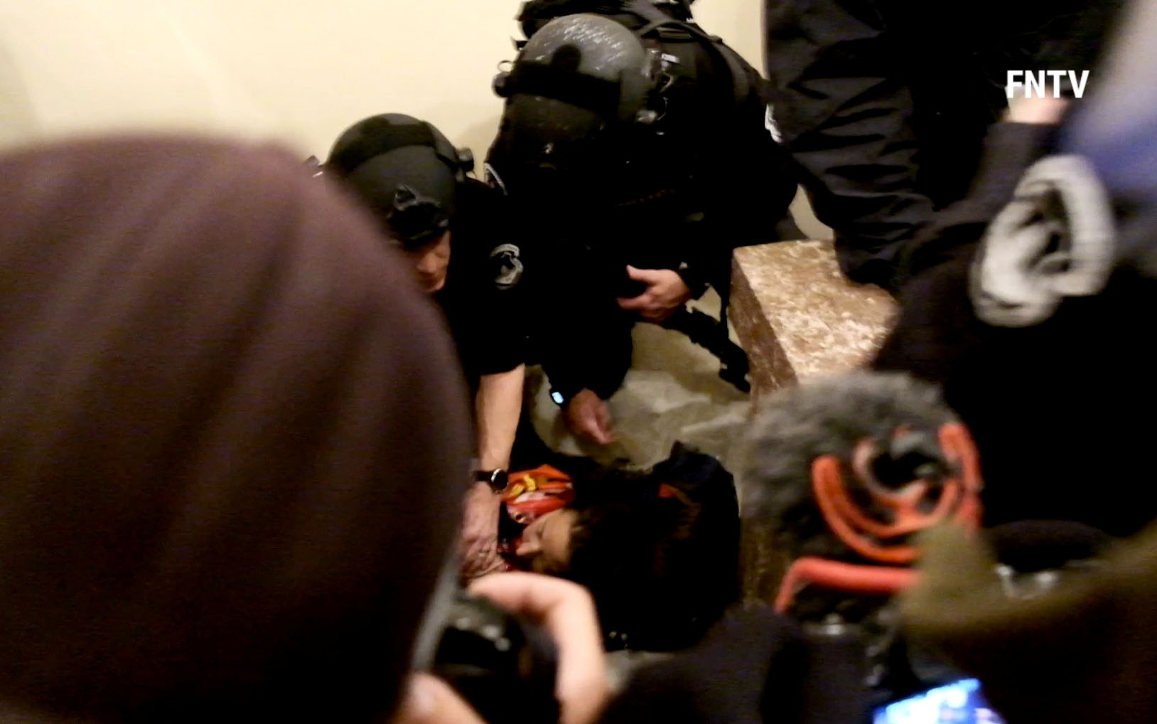 Ο Κόντι ανέφερε επιπλέον ότι αστυνομικός της φρουράς του Καπιτωλίου έριξε τη σφαίρα η οποία τραυμάτισε γυναίκα η οποία υπέκυψε αργότερα σε νοσοκομείο όπου διακομίστηκε. Δεν έδωσε στη δημοσιότητα τα στοιχεία του θύματος, αναφέροντας ότι εκκρεμεί η ενημέρωση των οικείων της.