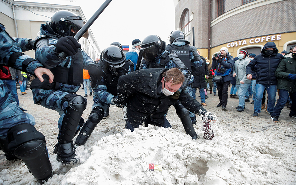 Συλλαμβάνοντας πάνω από 3.000 άτομα, η ρωσική αστυνομία διέλυσε διαδηλώσεις στη Μόσχα και σε άλλες ρωσικές πόλεις την Κυριακή, καθώς υποστηρικτές του Αλεξέι Ναβάλνι βγήκαν και πάλι στους δρόμους για να διαμαρτυρηθούν κατά της φυλάκισής του, παρά το δριμύ ψύχος και την απειλή σύλληψης. Μεταξύ των συλληφθέντων είναι και η σύζυγος του επικριτή του Κρεμλίνου, Γιούλια Ναβάλναγια.