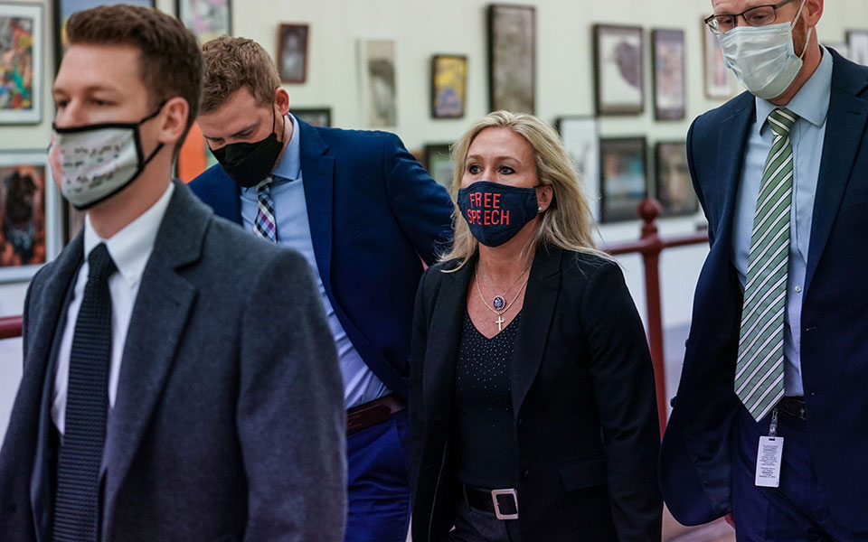 ΟΥΑΣΙΓΚΤΟΝ. Η βουλευτής των Ρεπουμπλικανών Μάρτζορι Τέιλορ Γκριν αποπέμφθηκε από τις επιτροπές της Βουλής στις οποίες είχε διοριστεί, αποτυγχάνοντας να μεταπείσει το σώμα, παρά την οκτάλεπτη ομιλία που θα μπορούσε να συνοψιστεί στη φράση «δεν είναι αυτό που νομίζετε». Η Τέιλορ Γκριν εμφανίστηκε μετανοημένη για κάποιες από τις συνωμοσιολογικές θεωρίες τις οποίες διέδιδε, προσπαθώντας να διαψεύσει τα βίντεο στα οποία η ίδια εμφανιζόταν.