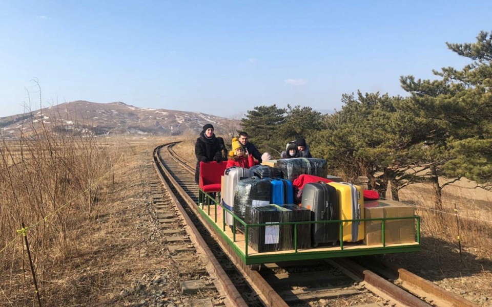Όπως φαίνεται και στην εικόνα που ανήρτησε στον λογαριασμό του στο Twitter το ρωσικό ΥΠΕΞ, Ρώσοι διπλωμάτες φόρτωσαν τα υπάρχοντα και τις οικογένειές τους στο καρότσι μεταφοράς εμπορευμάτων και το ανέβασαν στις ράγες του τρένου από τη βορειοκορεατική πρωτεύουσα Πιονγκγιάνγκ προς τα σύνορα με τη Ρωσία.