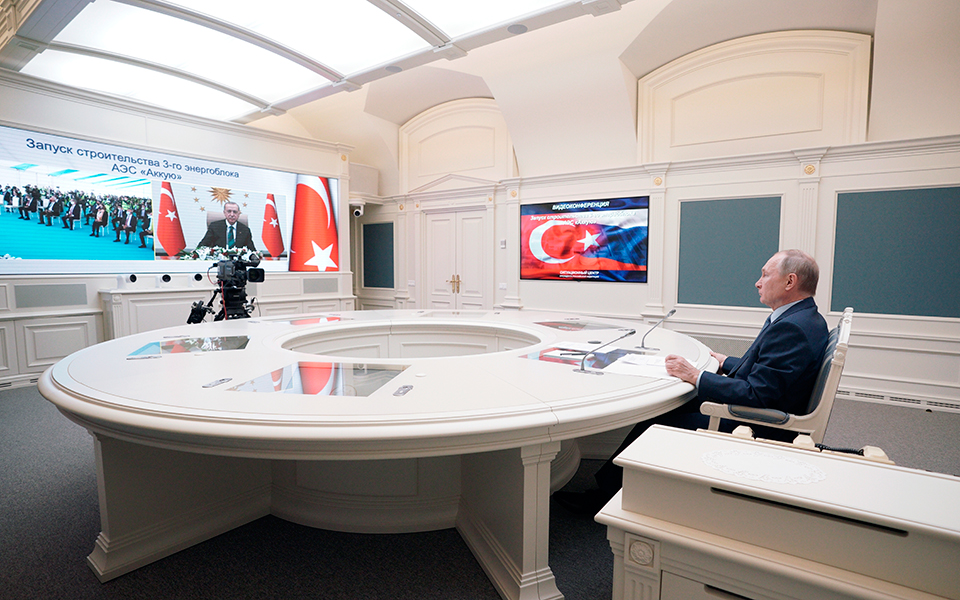 Ο Ρώσος πρόεδρος Βλαντίμιρ Πούτιν και ο Τούρκος πρόεδρος Ρετζέπ Ταγίπ Ερντογάν κήρυξαν σήμερα -μέσω τηλεδιάσκεψης- την έναρξη των εργασιών για τον τρίτο αντιδραστήρα του υπό κατασκευήν πυρηνικού σταθμού «Ακούγιου» στην Τουρκία, η λειτουργία του οποίου προγραμματίζεται για το 2023.