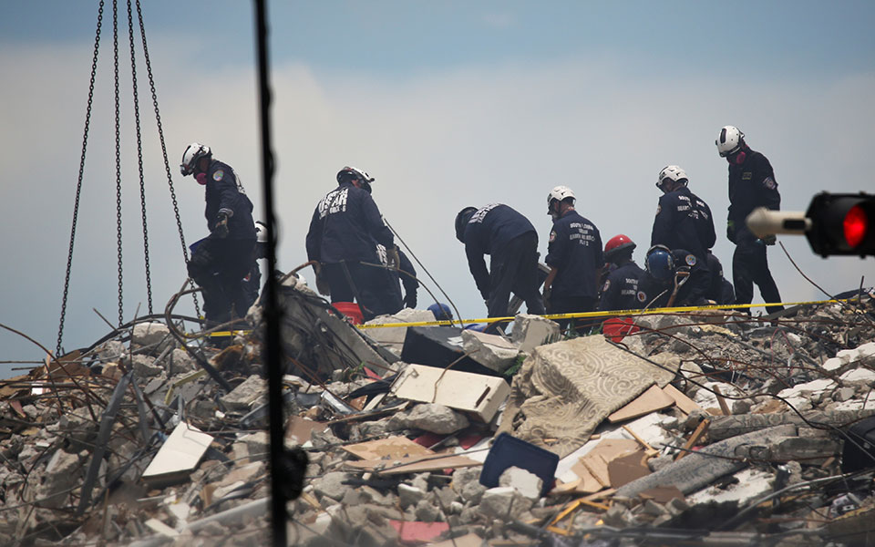 Ο απολογισμός των νεκρών αυξήθηκε σε πέντε χθες, Σάββατο, αφού οι διασώστες βρήκαν έναν νεκρό στη διάρκεια της μεθοδικής έρευνας που διεξάγουν στον τόπο της καταστροφής στο Σέρφσαϊντ, μια παραλιακή κωμόπολη κοντά στο Μαϊάμι, δήλωσε στη διάρκεια βραδινής ενημέρωσης των δημοσιογράφων η δήμαρχος της κομητείας Μαϊάμι-Ντέιντ Ντανιέλα Λιβάιν Κάβα.