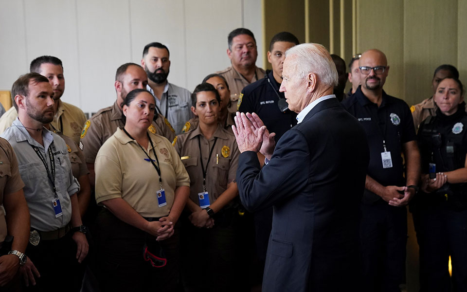 «Σας ευχαριστώ, σας ευχαριστώ, σας ευχαριστώ», επανέλαβε ο Μπάιντεν σε μια ομάδα ανδρών και γυναικών που συμμετείχαν στις πρώτες επιχειρήσεις διάσωσης. «Αυτό που κάνετε εδώ είναι απίστευτο», πρόσθεσε.