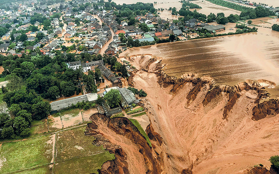 «Πλημμύρα ιστορικών διαστάσεων» χαρακτήρισε ο πρωθυπουργός της Βόρειας Ρηνανίας-Βεστφαλίας Αρμιν Λάσετ την τρομακτική καταστροφή που κόστισε τη ζωή τουλάχιστον 130 ανθρώπων και προξένησε ανυπολόγιστες ζημιές στο κρατίδιό του και στο γειτονικό κρατίδιο της Ρηνανίας-Παλατινάτου τη νύχτα της Τετάρτης προς Πέμπτη. Τόσο η ομοσπονδιακή κυβέρνηση όσο και η Κομισιόν συνέδεσαν τις πρωτοφανούς σφοδρότητας πλημμύρες στη Γερμανία με την κλιματική κρίση.