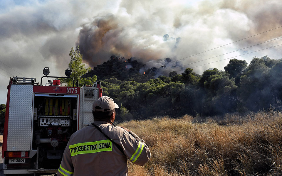 Σύμφωνα με την Πυροσβεστική, η φωτιά παραμένει σε εξέλιξη, πάντως η εικόνα έχει βελτιωθεί.