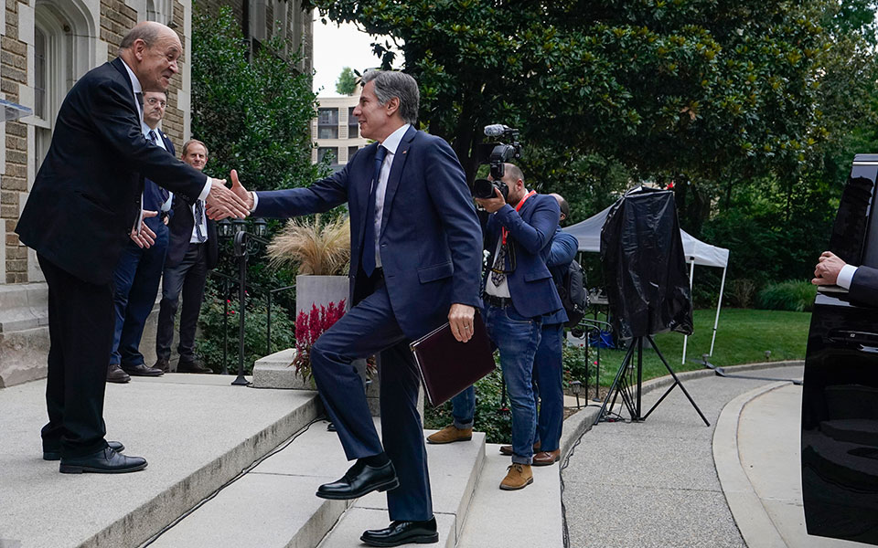 Οι υπουργοί Εξωτερικών των ΗΠΑ και της Γαλλίας, Άντονι Μπλίνκεν και Ζαν-Ιβ Λε Ντριάν, θα συναντηθούν σήμερα Πέμπτη κατ’ ιδίαν στη Νέα Υόρκη, την επομένη της κοινής ανακοίνωσης των προέδρων τους για να τελειώσει η κρίση στη σχέση του Παρισιού και της Ουάσιγκτον, δήλωσε Αμερικανός αξιωματούχος.