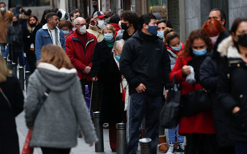 Η Ισπανία κατέγραψε σήμερα ρεκόρ κρουσμάτων της Covid-19, με 49.823 μολύνσεις μέσα σε 24 ώρες και η παραλλαγή Όμικρον, που είναι πιο μεταδοτική από τις προηγούμενες, ευθύνεται για σχεδόν τις μισές από αυτές, σύμφωνα με το υπουργείο Υγείας.