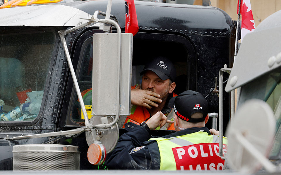Νωρίτερα, η καναδική αστυνομία απείλησε για πρώτη φορά ότι θα επέμβει για να λήξει η κατάληψη των δρόμων της Οτάβας, που διαρκεί σχεδόν δύο εβδομάδες.