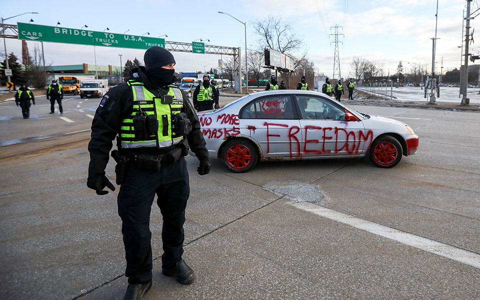 Σύμφωνα με την ανακοίνωση της αστυνομίας του Ουίνδσορ, πραγματοποιήθηκαν συλλήψεις και ρυμουλκήθηκαν οχήματα λίγο μετά τα ξημερώματα κοντά στη γέφυρα Αμπάσαντορ η οποία συνδέει το Οντάριο και το Ουίνδσορ με την αμερικανική πόλη Ντιτρόιτ.