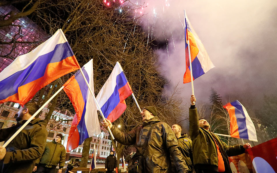 - 21:56Πανηγυρισμοί στις υπό απόσχιση περιοχές του Ντονμπάς μετά το διάγγελμα Πούτιν