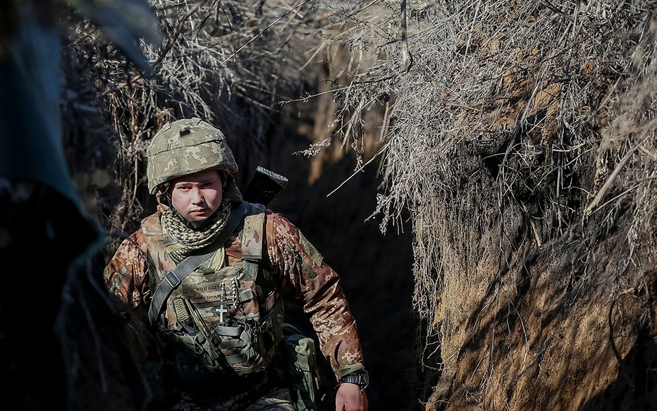 Ουκρανός στρατιώτης στην πρώτη γραμμή του μετώπου.
