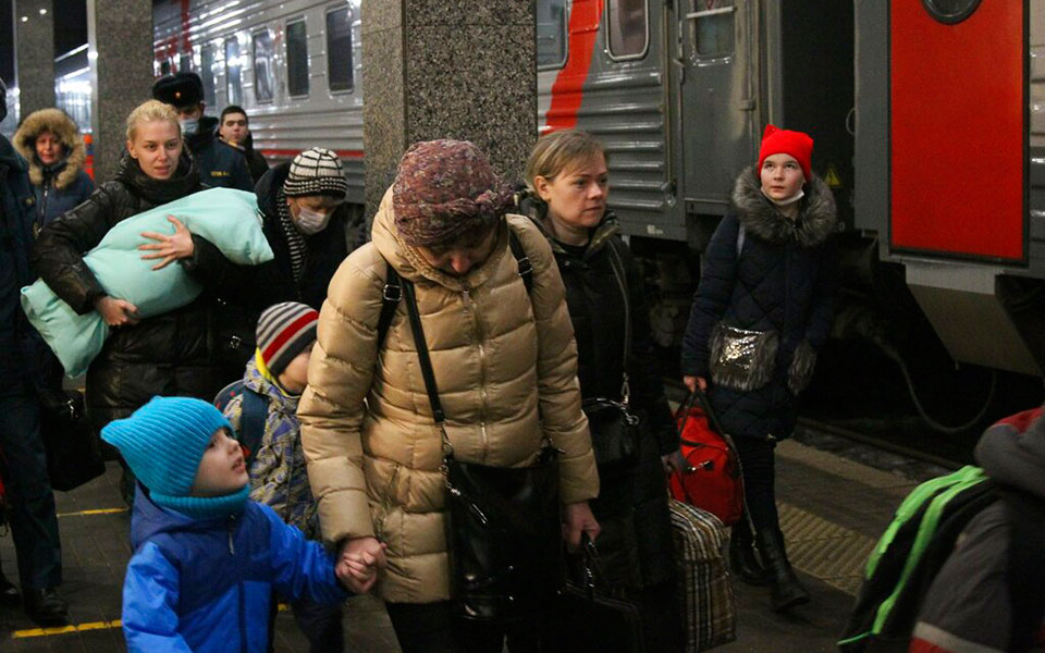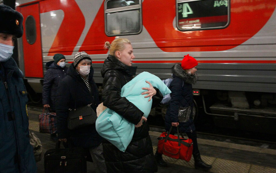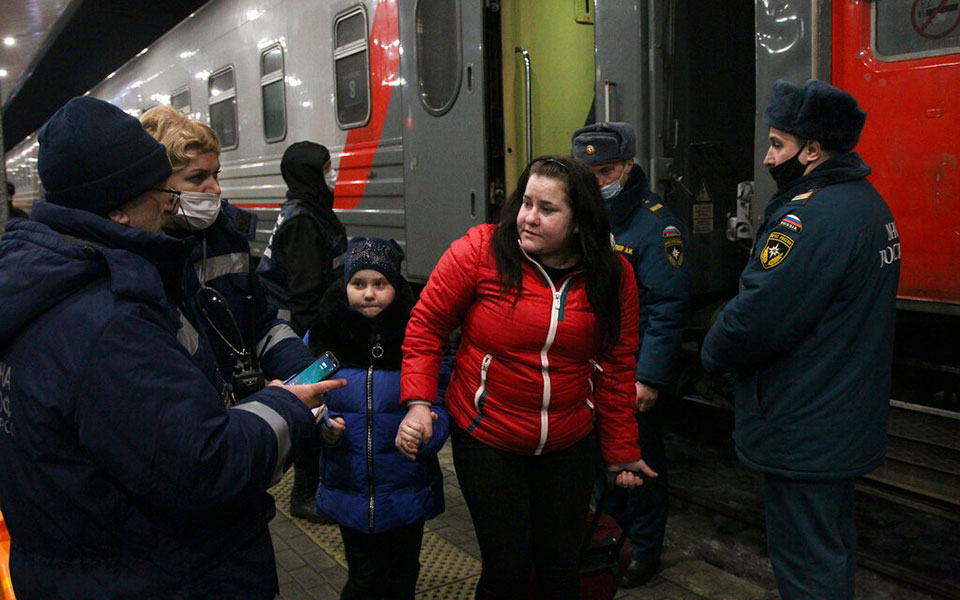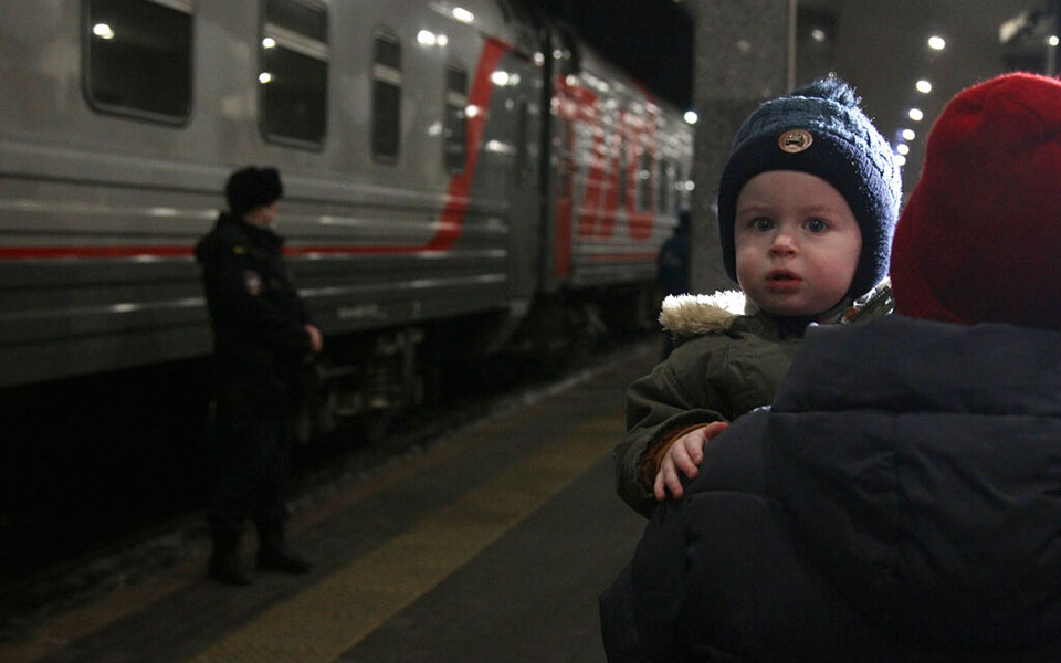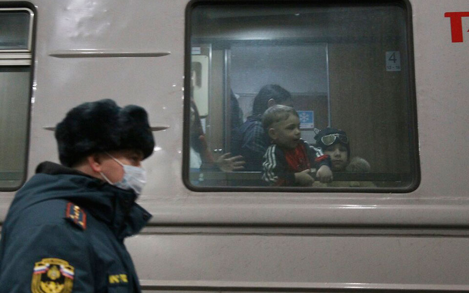 Παιδιά μεταφέρθηκαν στο Νίζνι Νόβγκοροντ της Ρωσίας από το Ντονέτσκ της Ουκρανίας, σύμφωνα με το Associated Press. Εικόνες από τον σιδηροδρομικό σταθμό του Νίζνι Νόβγκοροντ. AP Photo/Roman Yarovitcyn.