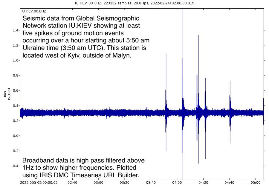 Μερικά λεπτά αφού μίλησε ο ρώσος πρόεδρος, δημοσιογράφοι μετέδωσαν πως άκουσαν τον ήχο ομοβροντιών πυροβολικού κοντά στο Κίεβο και πυρά στην περιοχή του αεροδρομίου Μπορισπίλ.