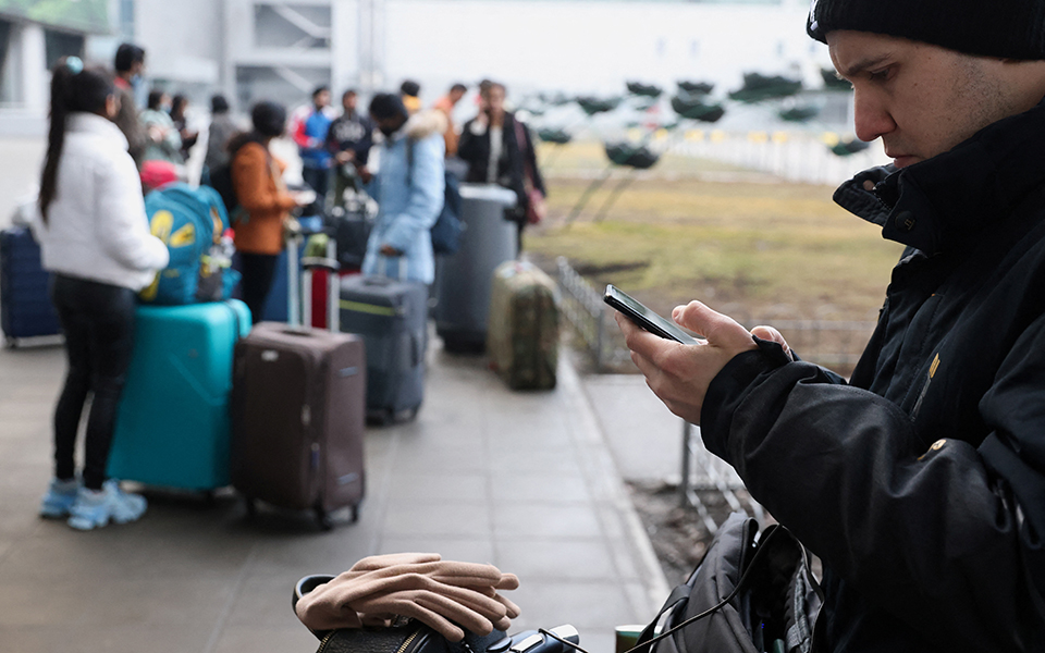 Η πτήση είναι προγραμματισμένη για τις 7 σήμερα το πρωί… Φτάνουμε στο αεροδρόμιο μιάμιση ώρα νωρίτερα και ενώ σε Twitter και Telegram υπάρχουν πληροφορίες σύμφωνα με τις οποίες ο εναέριος χώρος της Ουκρανίας είχε ήδη κλείσει.