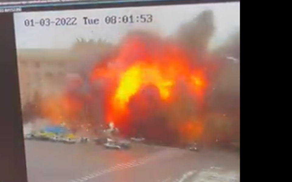 Επιπλέον, σε βίντεο που αναδημοσιεύει ο ανταποκριτής του Economist Oliver Carroll, φαίνεται το κυβερνητικό κτίριο στο Χάρκοβο να πλήττεται πιθανότατα από πύραυλο που προκαλεί μία τεράστια έκρηξη.