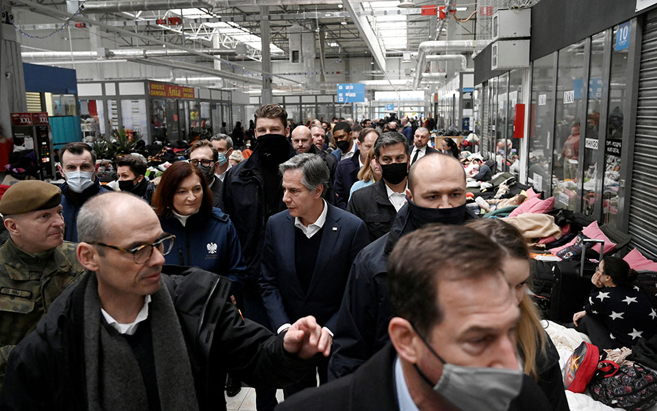 - 17:50Ο ΥΠΕΞ των ΗΠΑ Μπλίνκεν επισκέφθηκε συνοριακό πέρασμα της Πολωνίας όπου εκατοντάδες πρόσφυγες πέρασαν τα σύνορα από την Ουκρανία σε διάστημα μιας ώρας