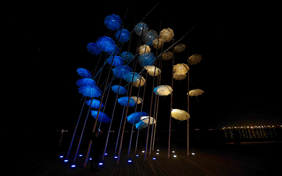 - 20:54Φωτισμένες με τα χρώματα της ουκρανικής σημαίας οι «Ομπρέλες» στη Θεσσαλονίκη