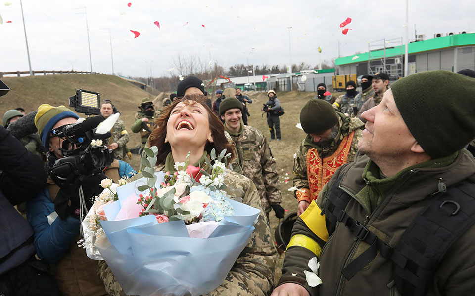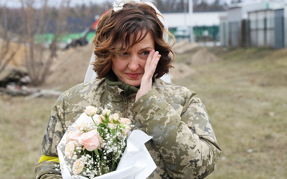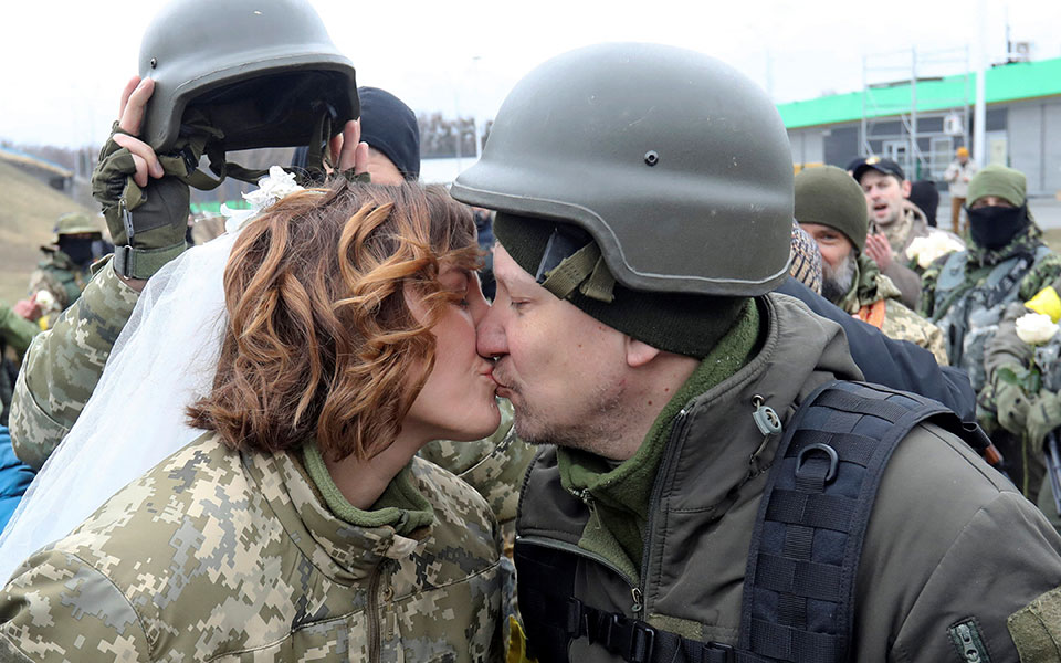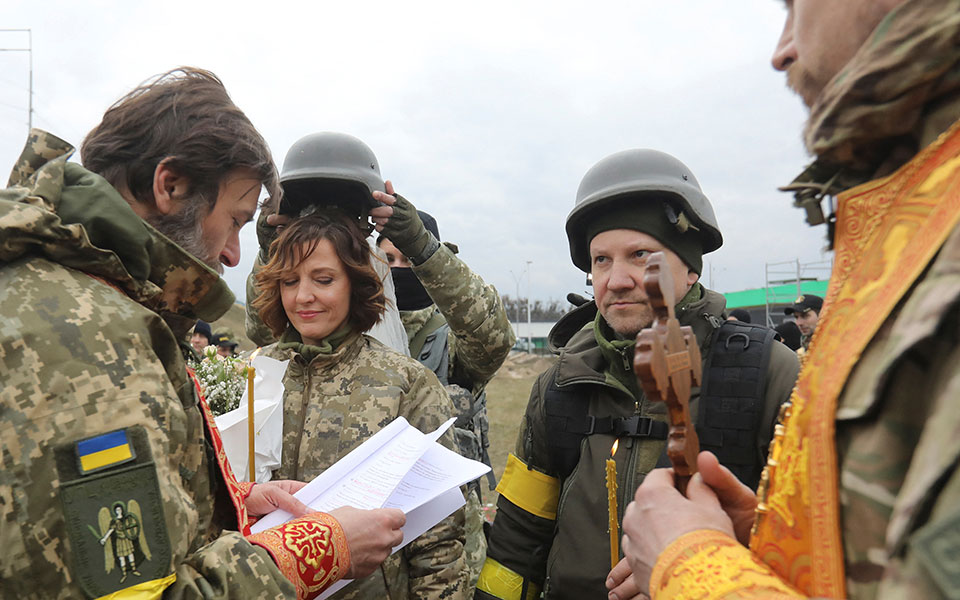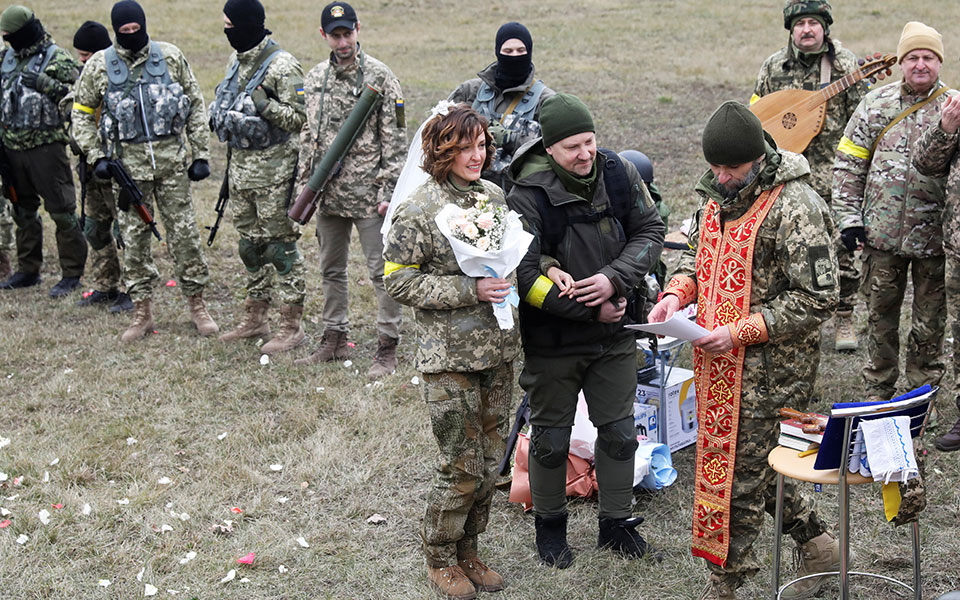 - 18:11Μέλη των Ουκρανικών Δυνάμεων Εδαφικής Άμυνας παντρεύτηκαν στο Κίεβο