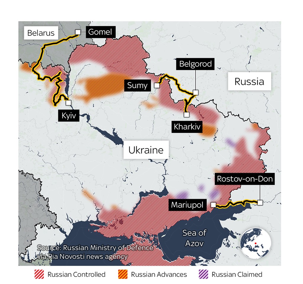 Σύμφωνα με το ρωσικό ρεπορτάζ, το υπουργείο Αμύνης στη Μόσχα ανακοίνωσε ότι επιτρέπει την εκκένωση από αμάχους του Κιέβου και άλλων τεσσάρων μεγάλων πόλεων της Ουκρανίας, δηλαδή του Χαρκόβου, της Μαριούπολης, του Τσερνίχιβ και του Σούμι.